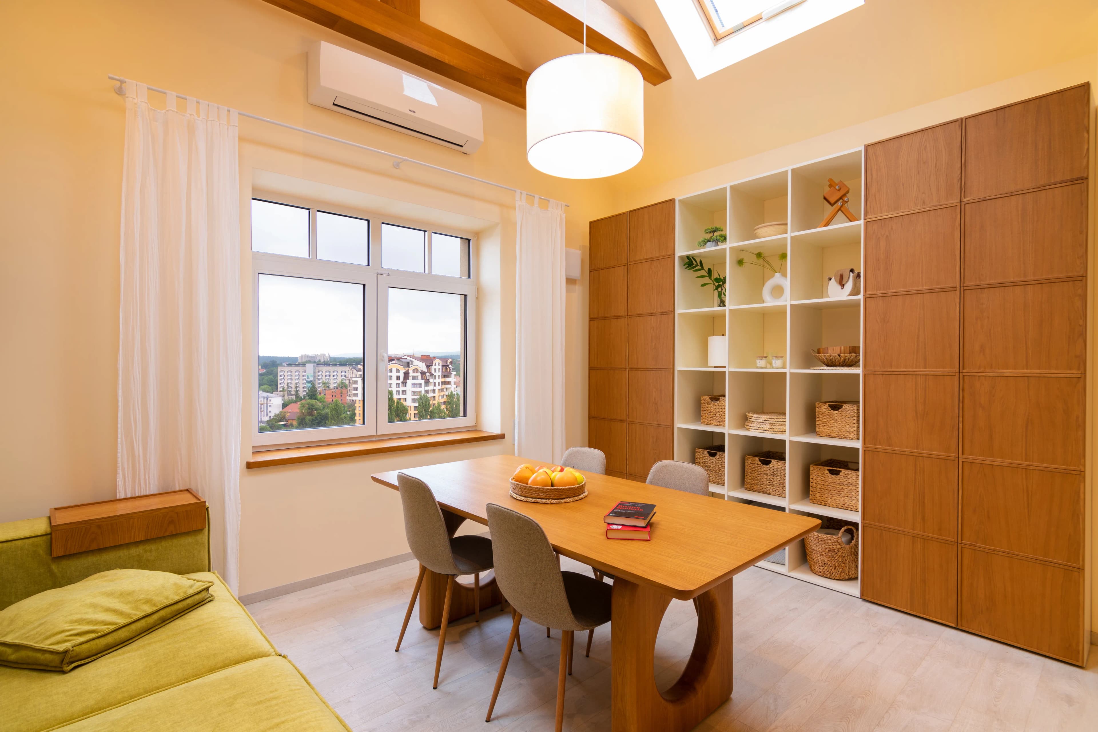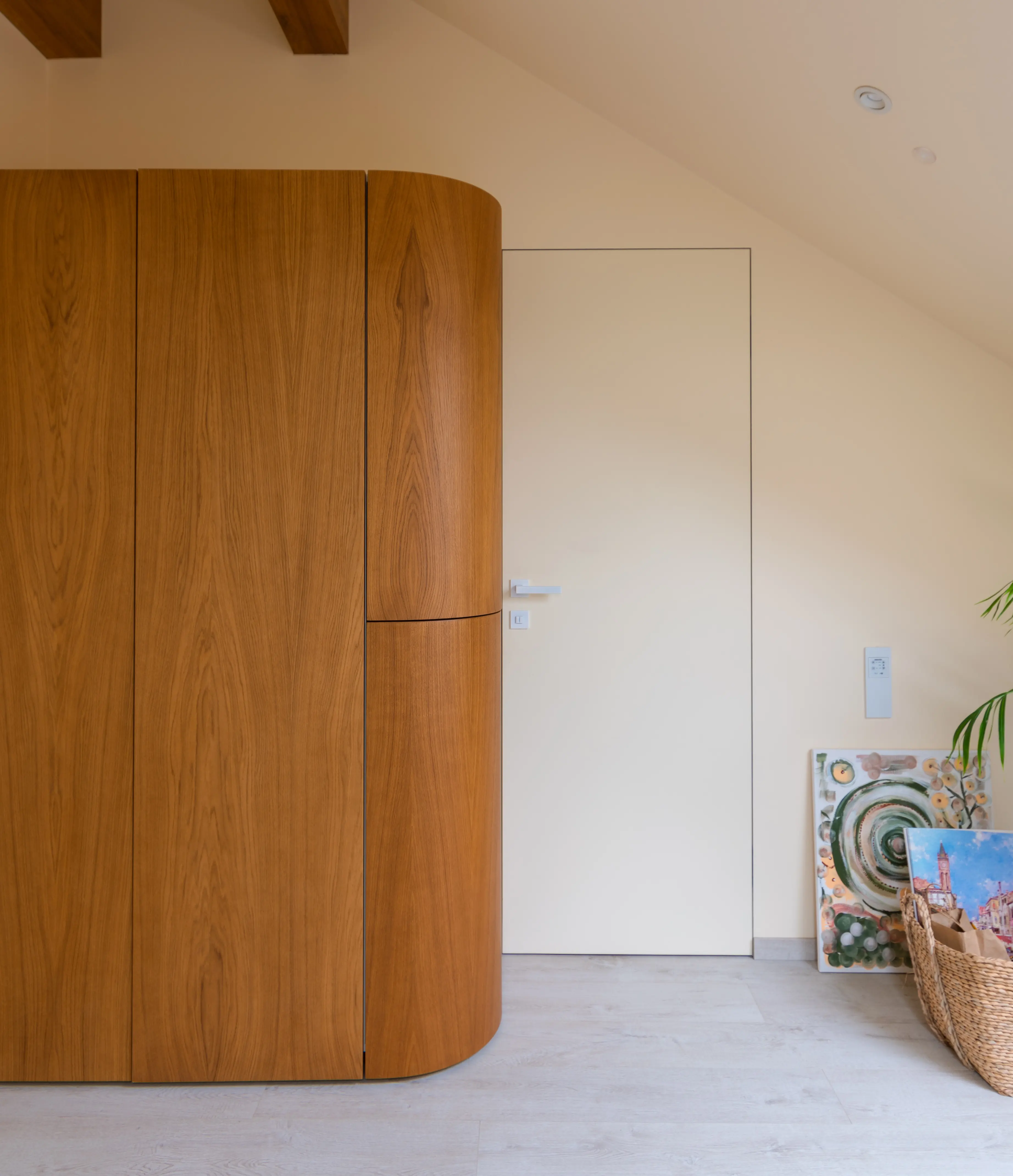 A wardrobe is an important element of interior design that shapes the space and emphasizes its style. This combination wardrobe combines a sleek white body made of Egger chipboard with the natural warmth of milled veneered MDF fronts. The longitudinal structure of natural oak gives the product depth and expressiveness, while maintaining a restrained and modern design. The cabinet design features a functional, open central area, ideal for storing decorations or books. The framed, paneled closed side sections not only emphasize the noble texture of natural wood, but also visually elongate the space, making the interior more harmonious. The combination of light surfaces, high-quality materials, and clear geometry creates a cohesive look. This cabinet is the perfect choice for modern interiors that value a balance of aesthetics, functionality, and natural materials.